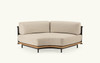 A two-seater padded sofa with wooden structure and woven backrest with waterproof padding.